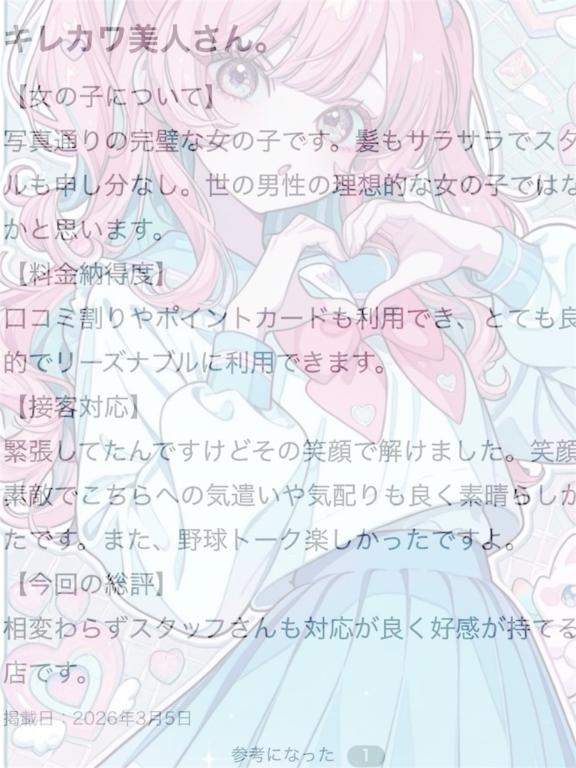 ・明るく優しくて、とっても癒されました。次も指名したいです。
