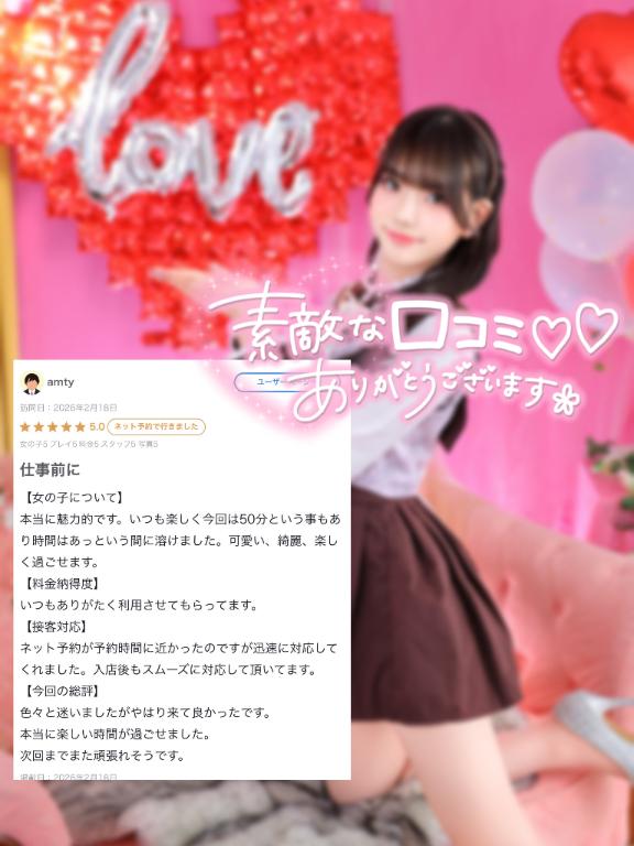 ・可愛いしか勝たん!スタイルも良く、見惚れてしまった。会話も弾み楽しく過ごせた。